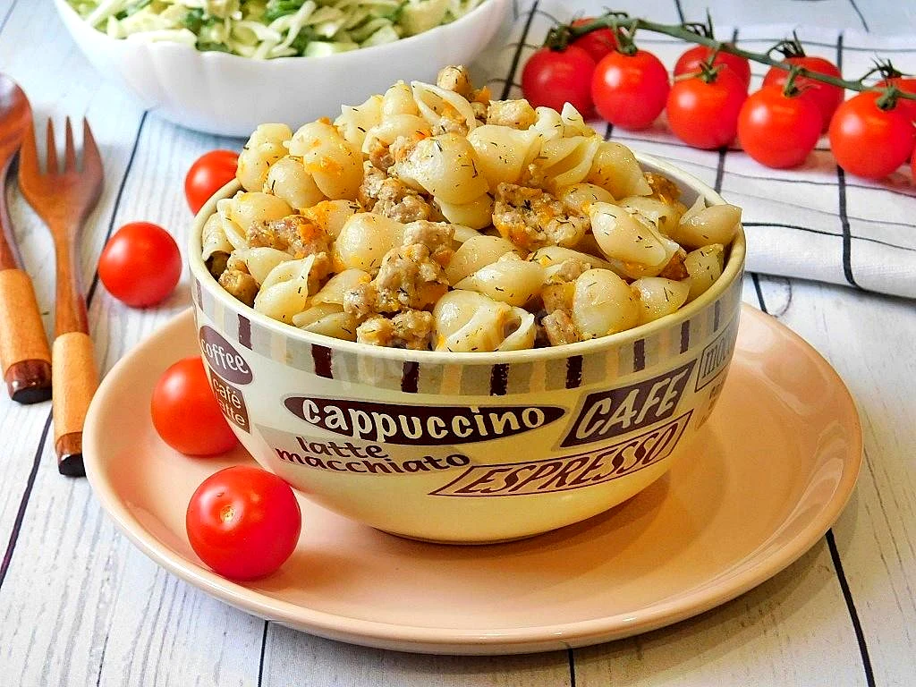 : Готові макарони з фаршем перемішайте та розкладіть по тарілках. Приємного апетиту!
