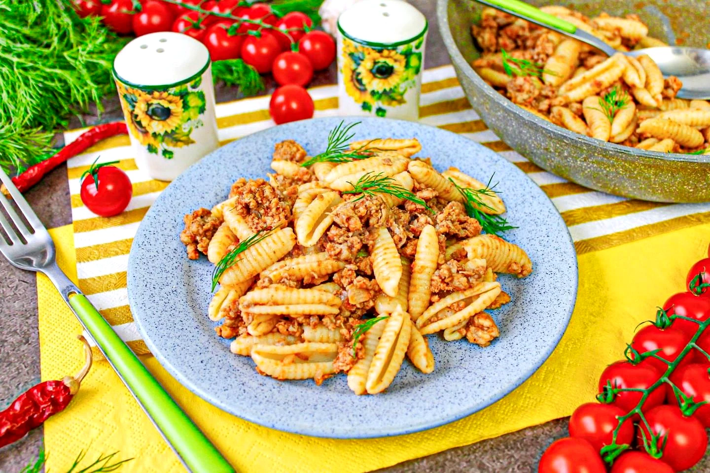 Макарони з помідорами та фаршем