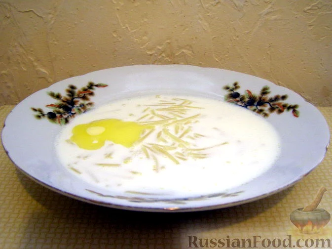 Рецепт Молочний суп з вермішеллю, склад: молоко, вермішель (з твердих сортів пшениці), цукор, олія, сіль;, Рецепти перших страв, Солодкі супи, Супи, Суп вермишелевий, Суп молочний, Супи з крупами і б…