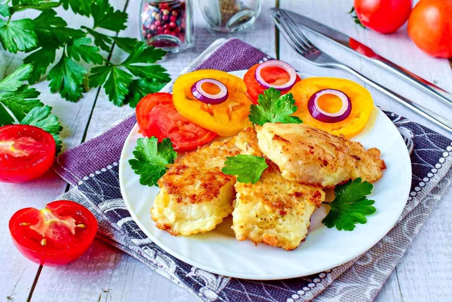 : Рибу заздалегідь витягніть із морозильної камери та залиште розморозитись при кімнатній температурі. Розморожену рибу промокніть паперовими рушниками, щоб видалити зайву вологу. Підготовлену рибу наріжте на невеликі шматочки і посипте сіллю та спеціями. Як спеція можна обмежитися меленим перцем, а можна скористатися готовим набором спеції для риби.
