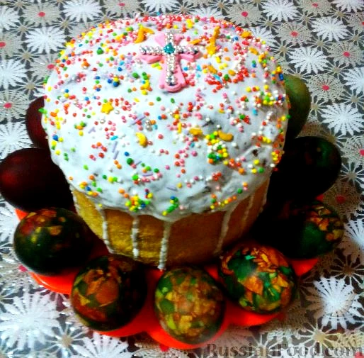 Рецепт Мій паску, склад: борошно - навколо, молоко, сметана, маргарин, масло вершкове, дріжджі свіжі, яйця, жовток, цукор, родзинки, ванілін, есенція грушева;, Рецепти виробів з тіста, Паски, Тісто, …