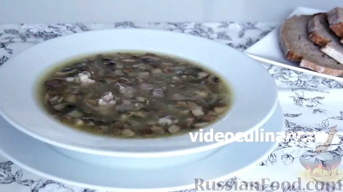 Подаємо м'ясний суп із грибами зі свіжим домашнім хлібом.