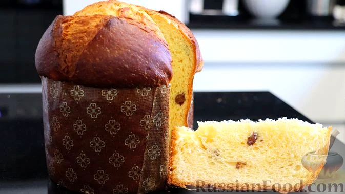 Рецепт Панеттон, склад: Для опари: борошно, молоко, дріжджі сухі (1/2 ч. ложки або свіжих 8 г), цукор; Для тесту: яйця, жовток, масло вершкове, молоко, мед, цукор, борошно (200+20 на підсипку), дріжд…