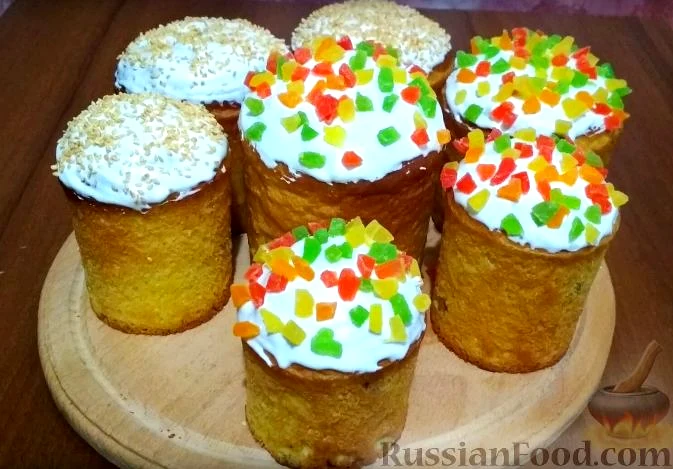 Рецепт Паски, склад: борошно, молоко, дріжджі сухі, цукор, цукор ванільний, масло вершкове 82%, яйця, олія соняшникова, лимон (зняти цедру), родзинки; Для глазурі: цукрова пудра, желатин, вода (3,5 д…