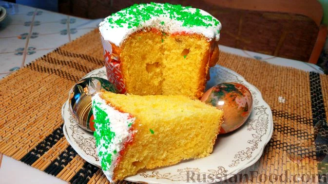 Рецепт Паски в мікрохвильовій печі, склад: (стакан - 250 мл) борошно, маргарин, масло вершкове, молоко, яйця, цукор, дріжджі сухі, родзинки, цукати, цукор ванільний, сіль; Для глазурі: яєчний білок, …