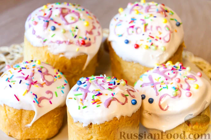 Рецепт Паска "Екзотик", склад: яйця, дріжджі (вологі), масло вершкове, молоко, цукор, борошно пшеничне (просіяне), цукрова пудра, цукор ванільний, цедра апельсинова (з одного апельсина), цукати, буря…