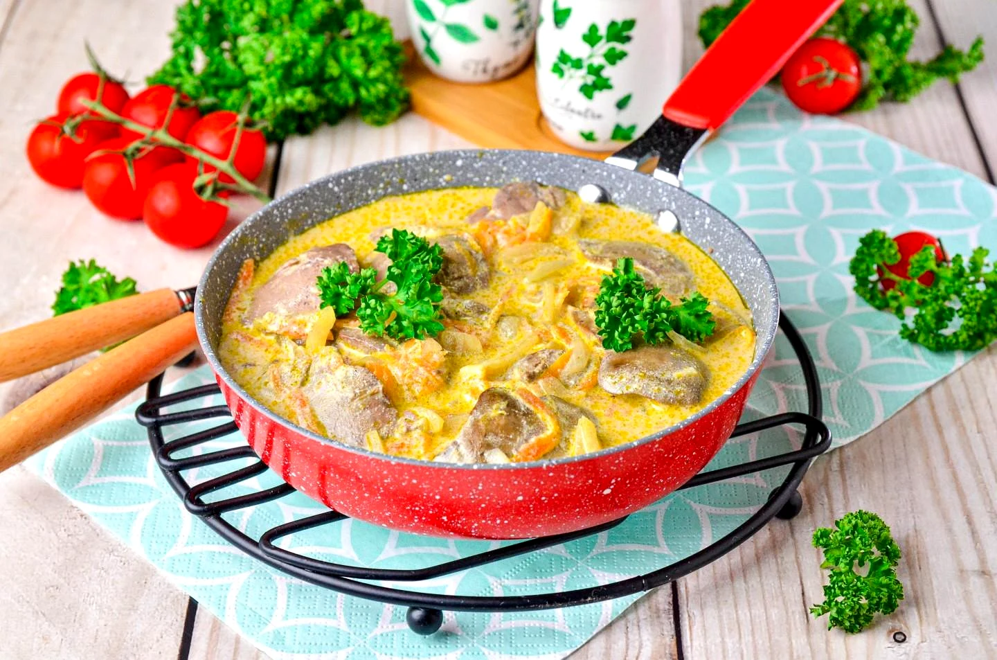 : Подавайте тушковану печінку до столу з будь-яким гарніром Приємного апетиту!