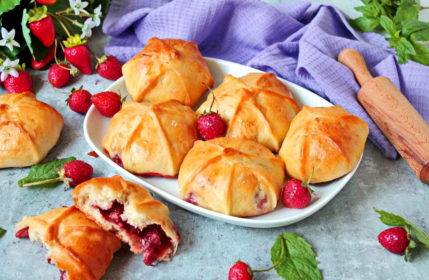 Випікайте ароматні тістечка з сочною клубникою за простим рецептом дрожджового тіста. М'яке, повітряне тісто з легким ягідним наповненням — ідеальна домашня випічка для сім'ї та гостей.
