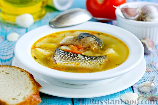 Рибний суп з пеленгасу з помідорами та часником