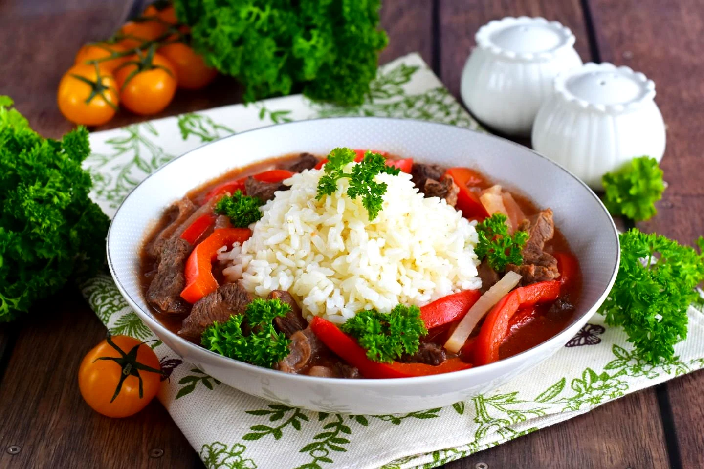 Приготуйте ароматний рис з м'ясною підливкою на сковороді! Мʼясистою яловичиною, цибулею, помідорами і болгарським перцем створюєте незабутню страву. Спеції зира та коріандр дарують справжній смак. І…