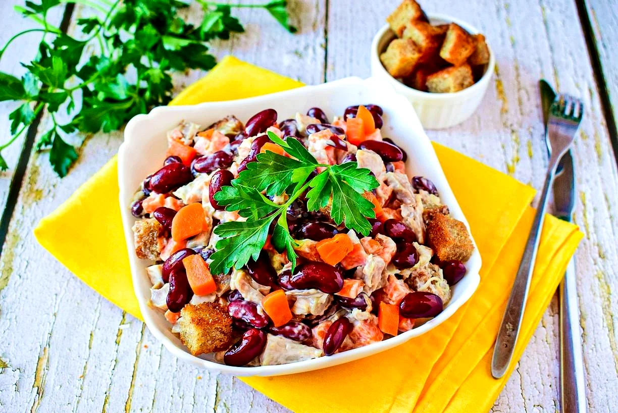 Салат квасоля морква курка копчена