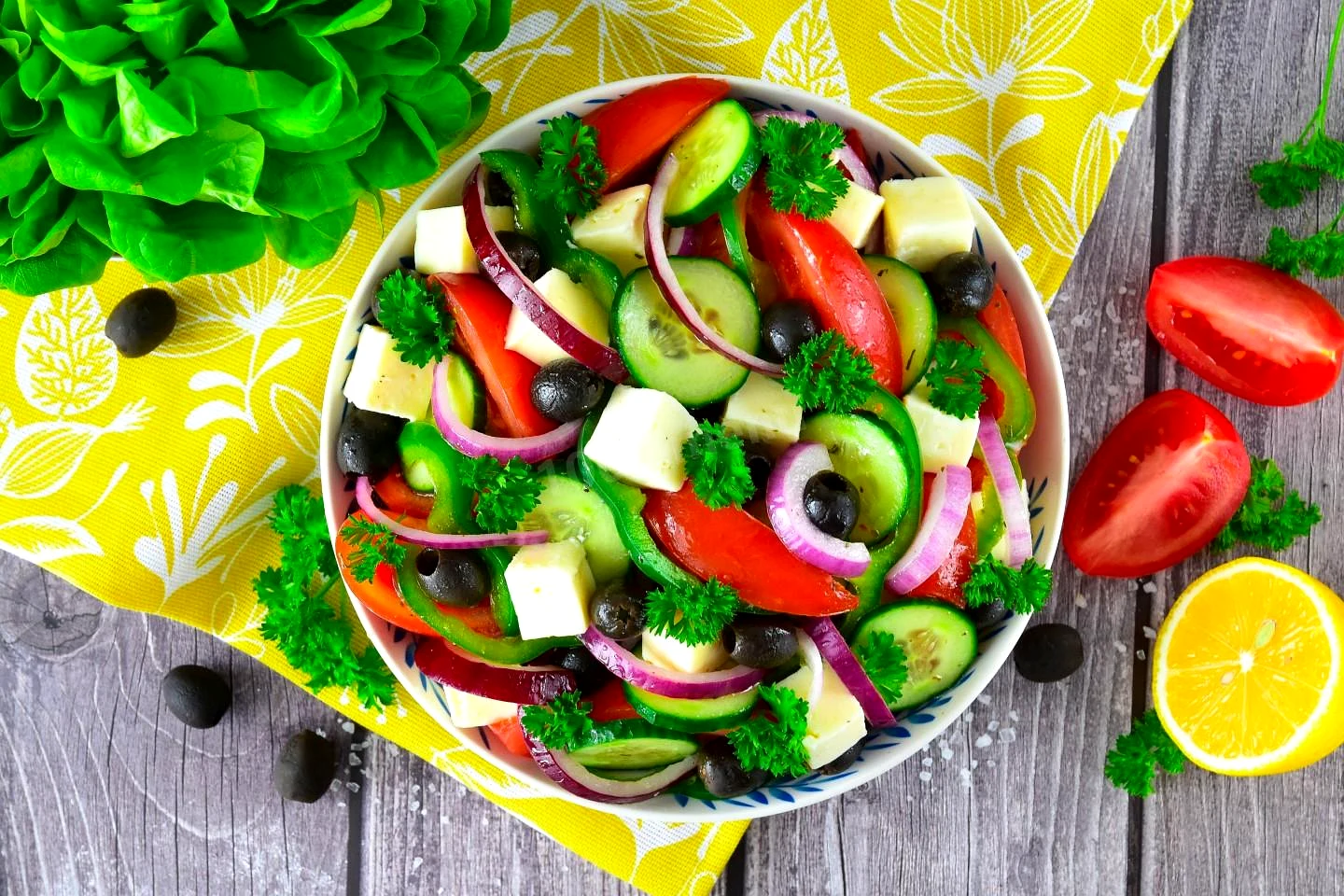Салат грецький з бринзою та маслинами класичний