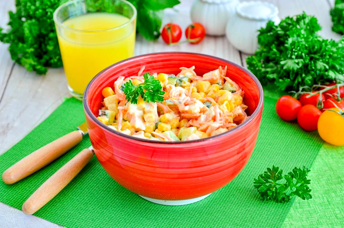Приготуйте смачний салат з копченої курки, хрустких корейських морквин та солодкої кукурудзи. Легкий рецепт з пікантним соусом зі сметани та гірчиці. Ідеальна страва для святкового столу та повсякден…