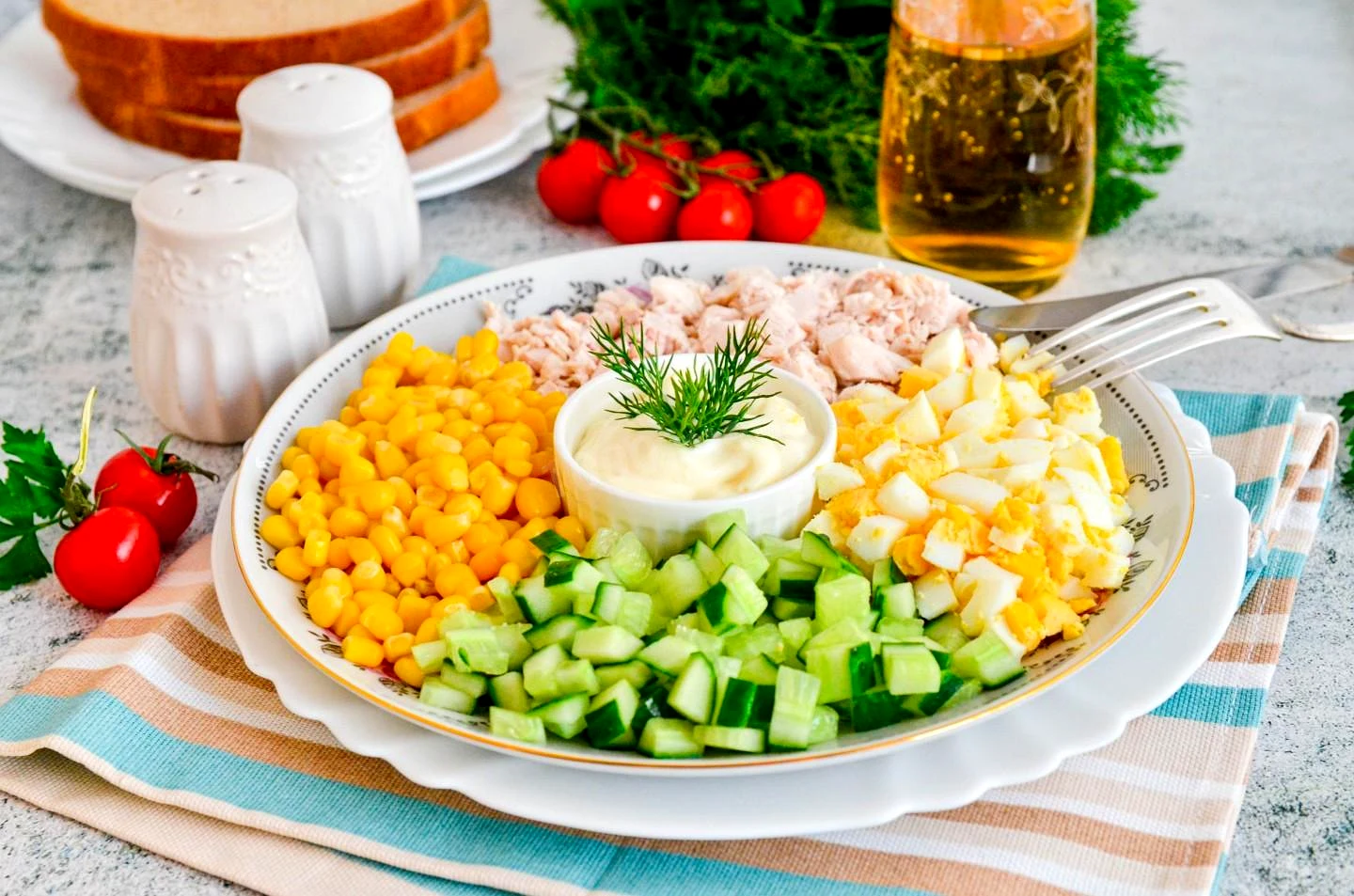 Салат курячі грудки кукурудза огірок яйце