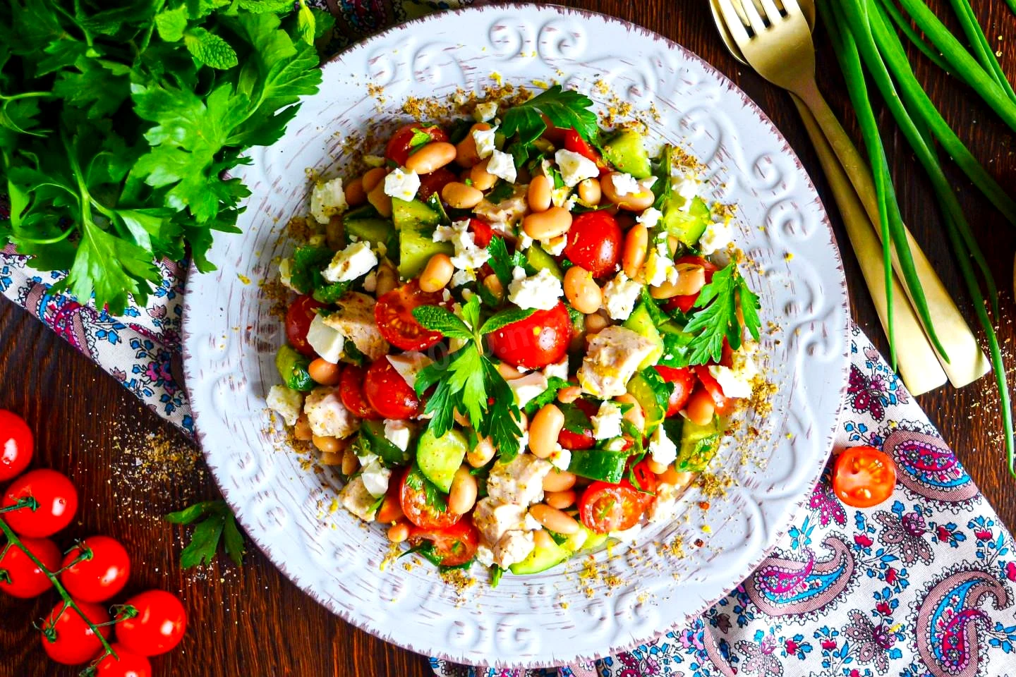 Салат з білою квасолею консервованою огірком та куркою