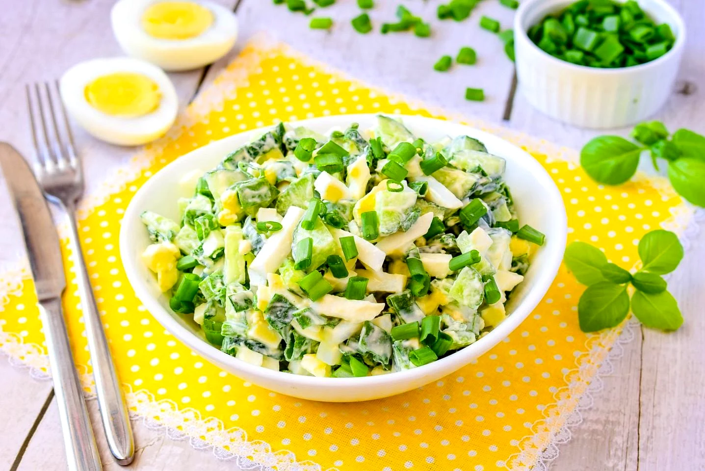 Салат з огірком зеленою цибулею та яйцем класичний.