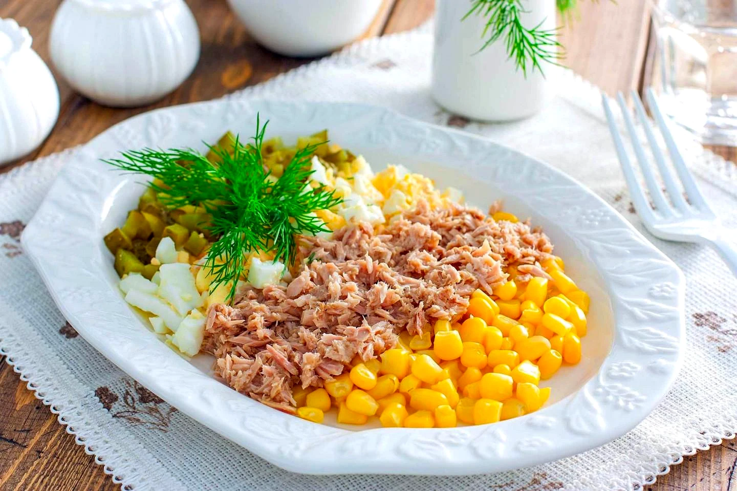 Салат з тунцем кукурудзою та яйцями