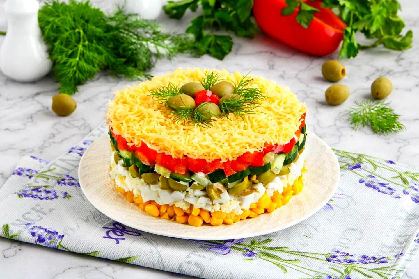 Приготуйте свіжий та смачний салат з яйцем, сиром та кукурудзою! Це чудова закуска для вашого столу, яка поєднує хрустку кукурудзу, ніжне яйце, розтопленого сиру та хрусткі огірки. Салат дуже легко г…