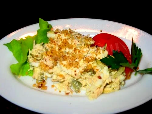 Інгредієнти−6 порцій+Продукти (6 порцій)Волоські горіхи0.5 стак.Кальмари консервовані500 грРодзинки0.5 стак.Майонез150 гр