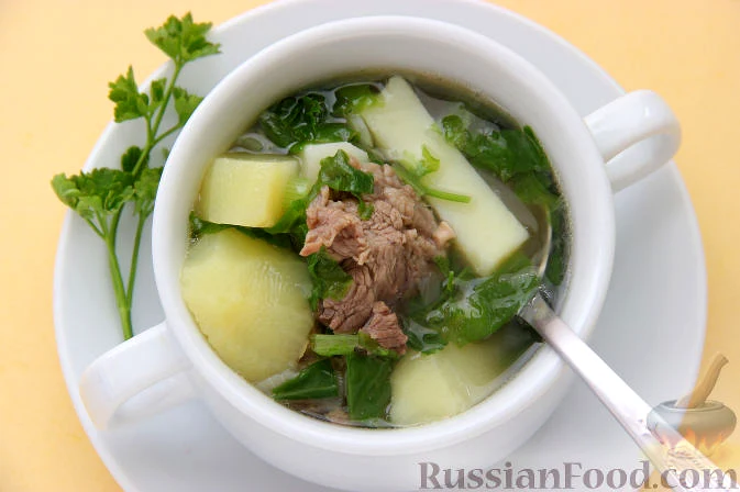 Рецепт Суп бухлер з бараниною, склад: баранина, картопля, цибуля ріпчаста, зелень, сіль; Спеції для баранини: барбарис (сушені ягоди), зіра (кумін);, Рецепти перших страв, Супи, Суп з баранини, Покро…