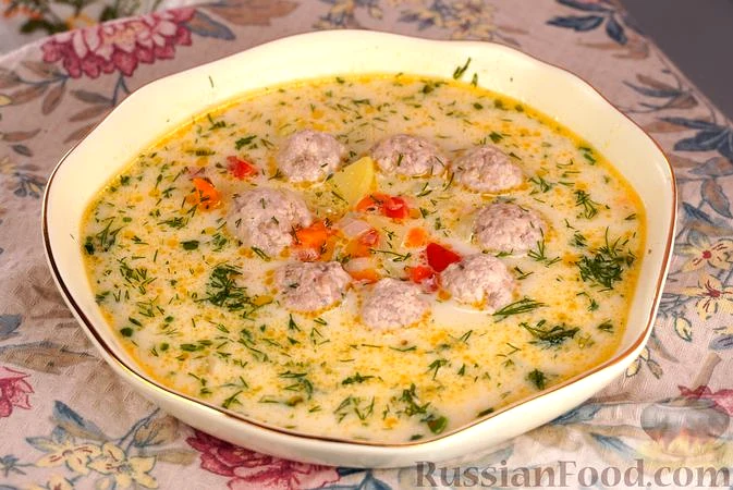 Сирний суп з фрикадельками та овочами