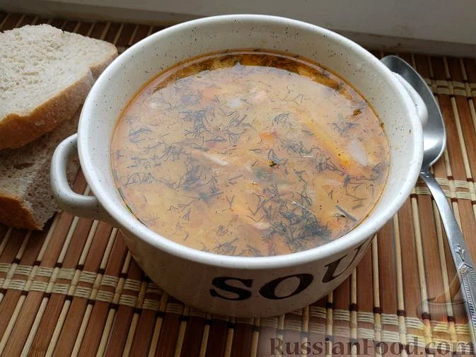 Рецепт Юшка по-фінськи з сьомгою і вершками, склад: риба червона (хребет червоної риби), картопля, цибуля ріпчаста, морква, цибуля зелена, вершки 10%, масло вершкове, зелень кропу, сіль (за смаком), …