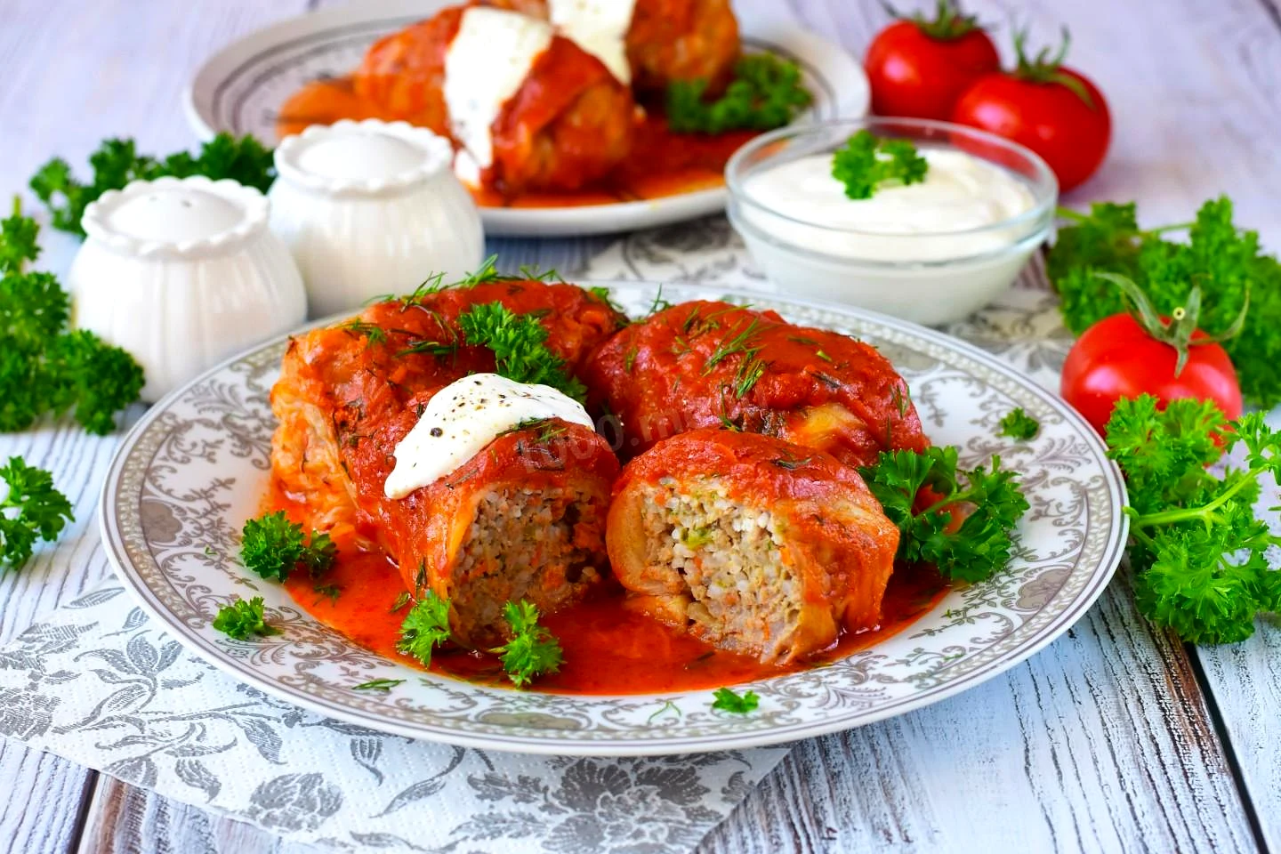: Подавайте голубці зі сметаною та томатною підливою з каструлі Приємного апетиту!